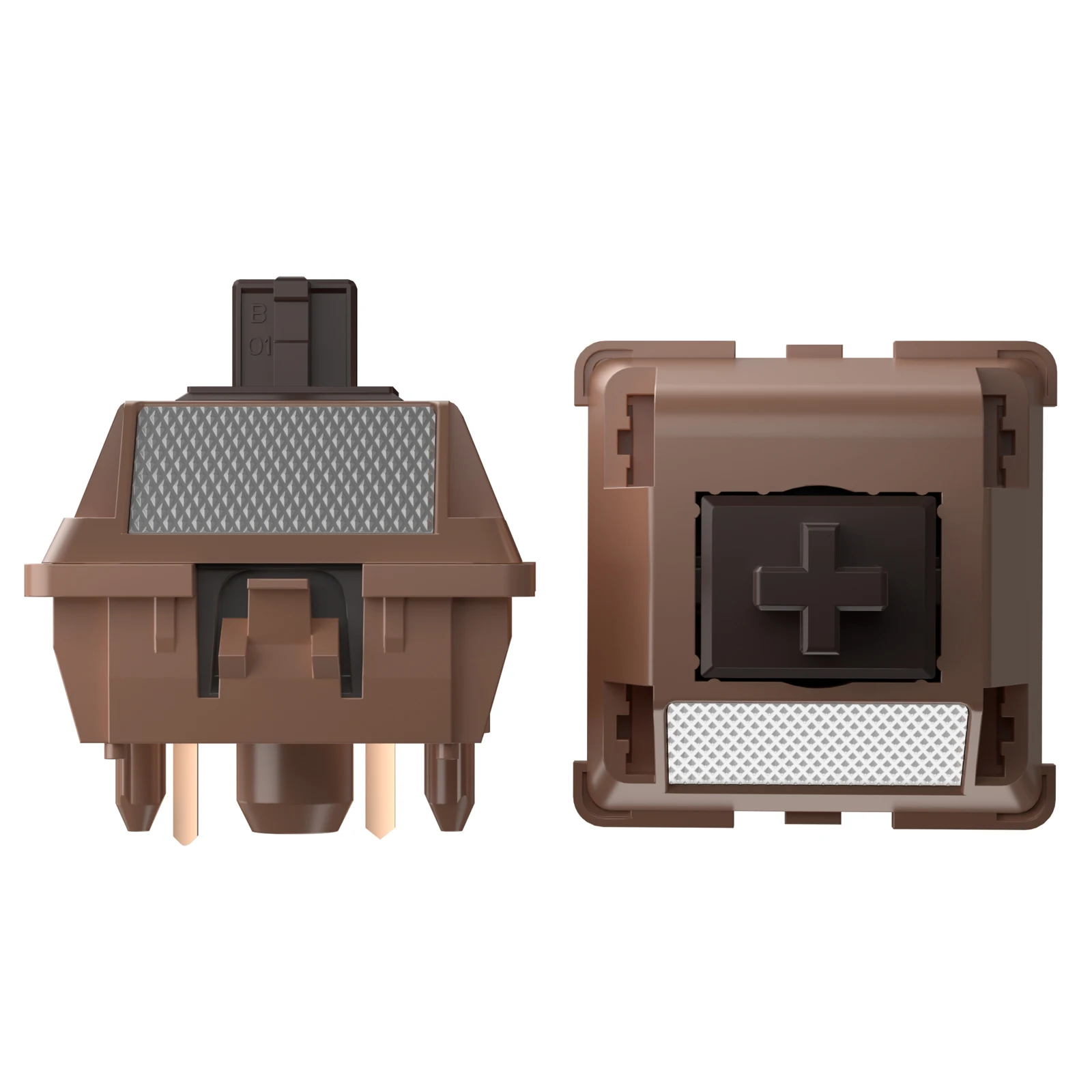 The 2025 DUROCK Mocha Switch series is with Full POK Housing&Modified POM Stem, added the Long spring, it may bring you Thocky Sound and a different typing feelings.